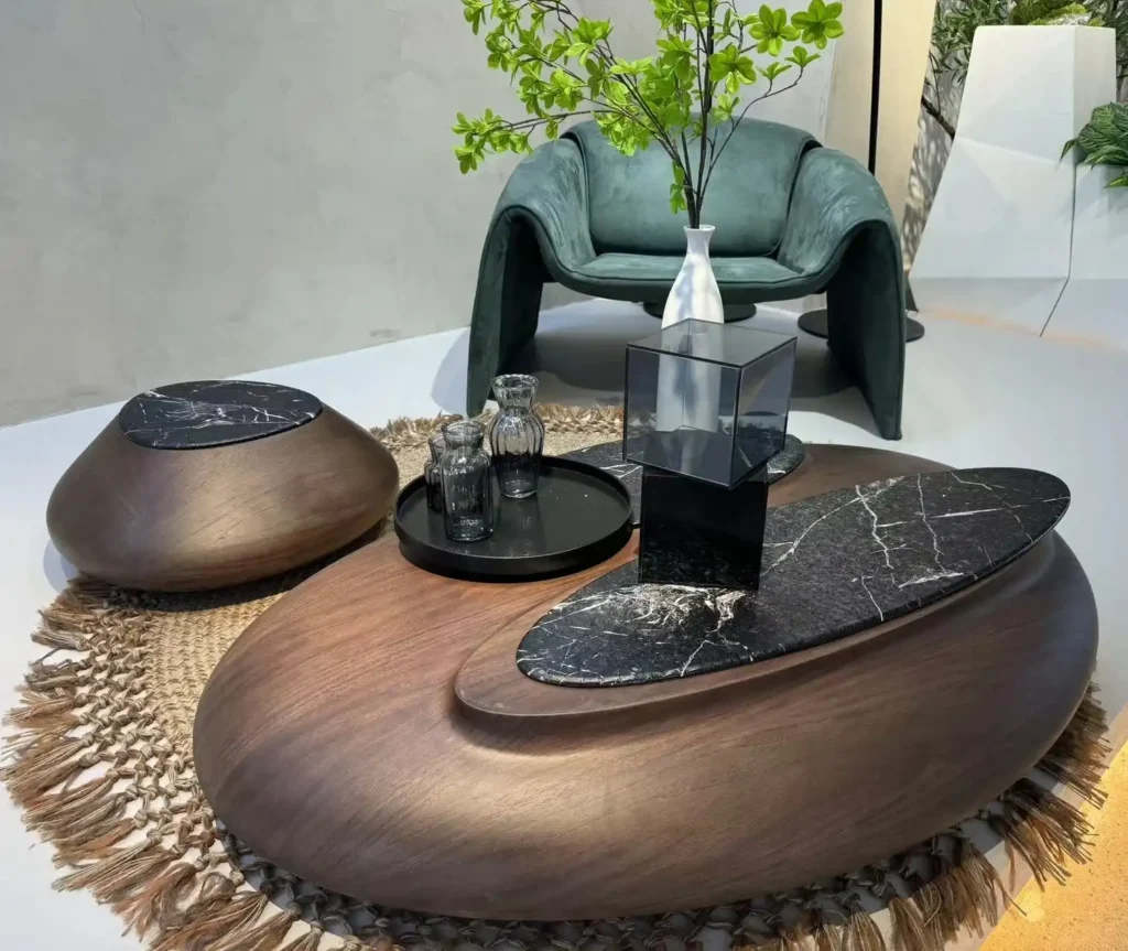 Wood and Marble Oval Egg Coffee Table with Unique Design – Elegant