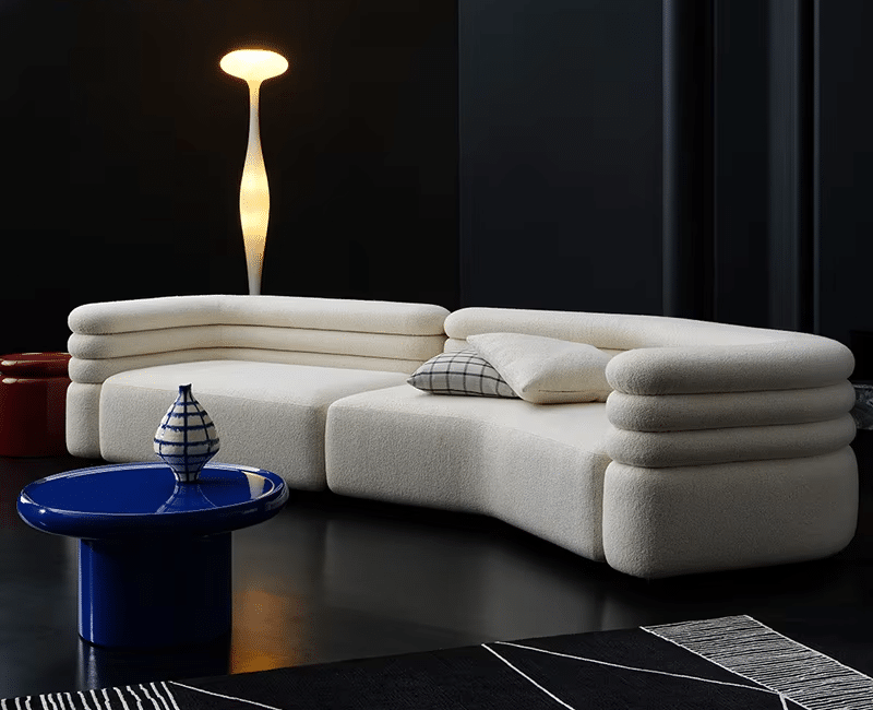 Velvet Curved Modular Sofa with Solid Wood Frame – Wabi-Sabi Style – Three-Seater – Neutral