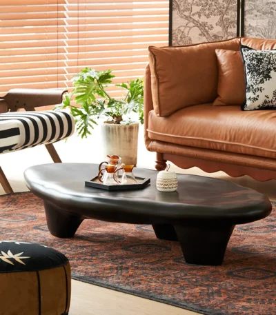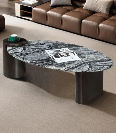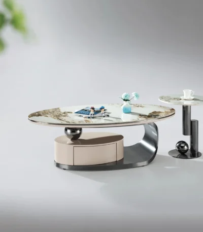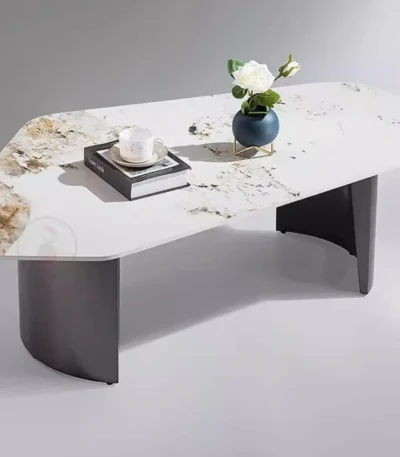 Rock Slate Special-Shaped Coffee Table with Stainless Steel and Titanium Base – Modern Elegance