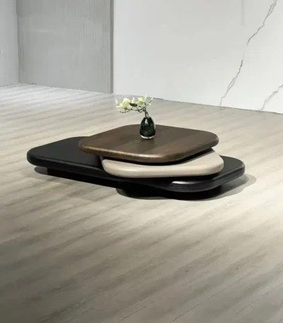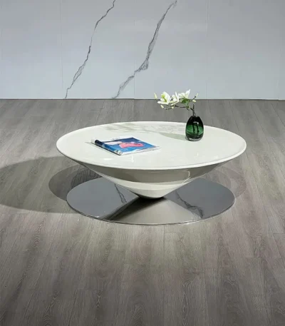 White Wax Veneer Oval Swivel Coffee Table – Elegant Design