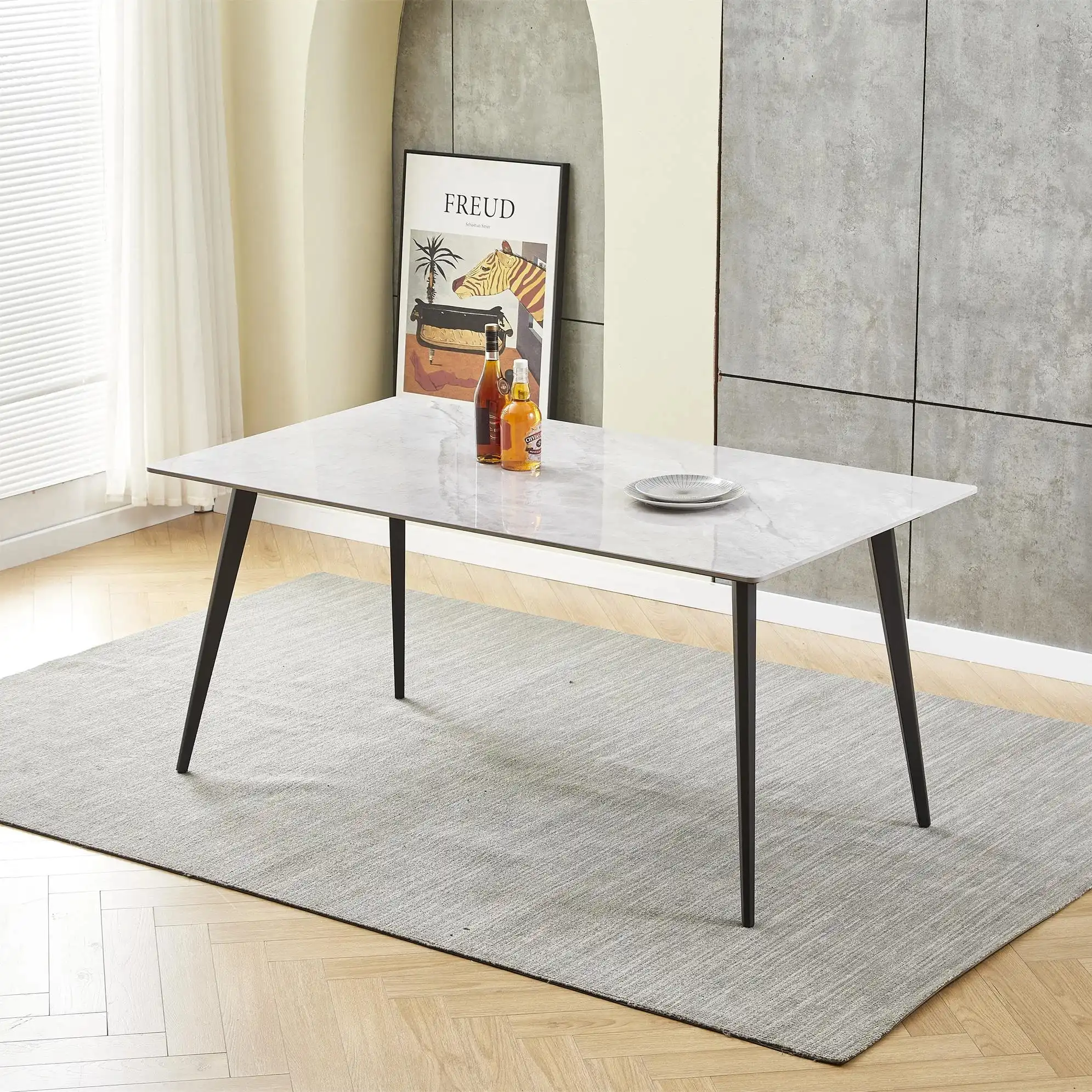 Crafted from high-quality black wood, this dining table is not only visually appealing but also durable and sturdy. The seamless finish and modern rectangular design make it an ideal fit for a variety of interior styles, from contemporary to more traditional aesthetics.