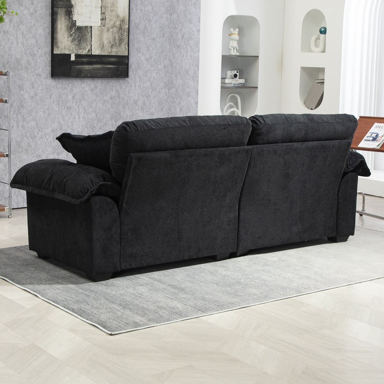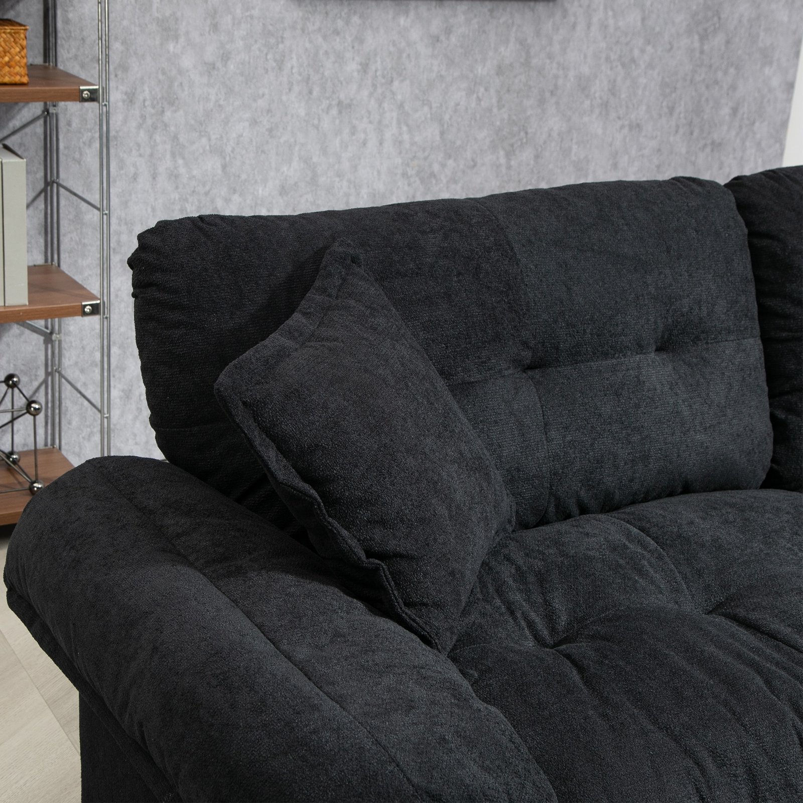 Chenille Loveseat with Memory Foam Cushions and 2 Throw Pillows – Black