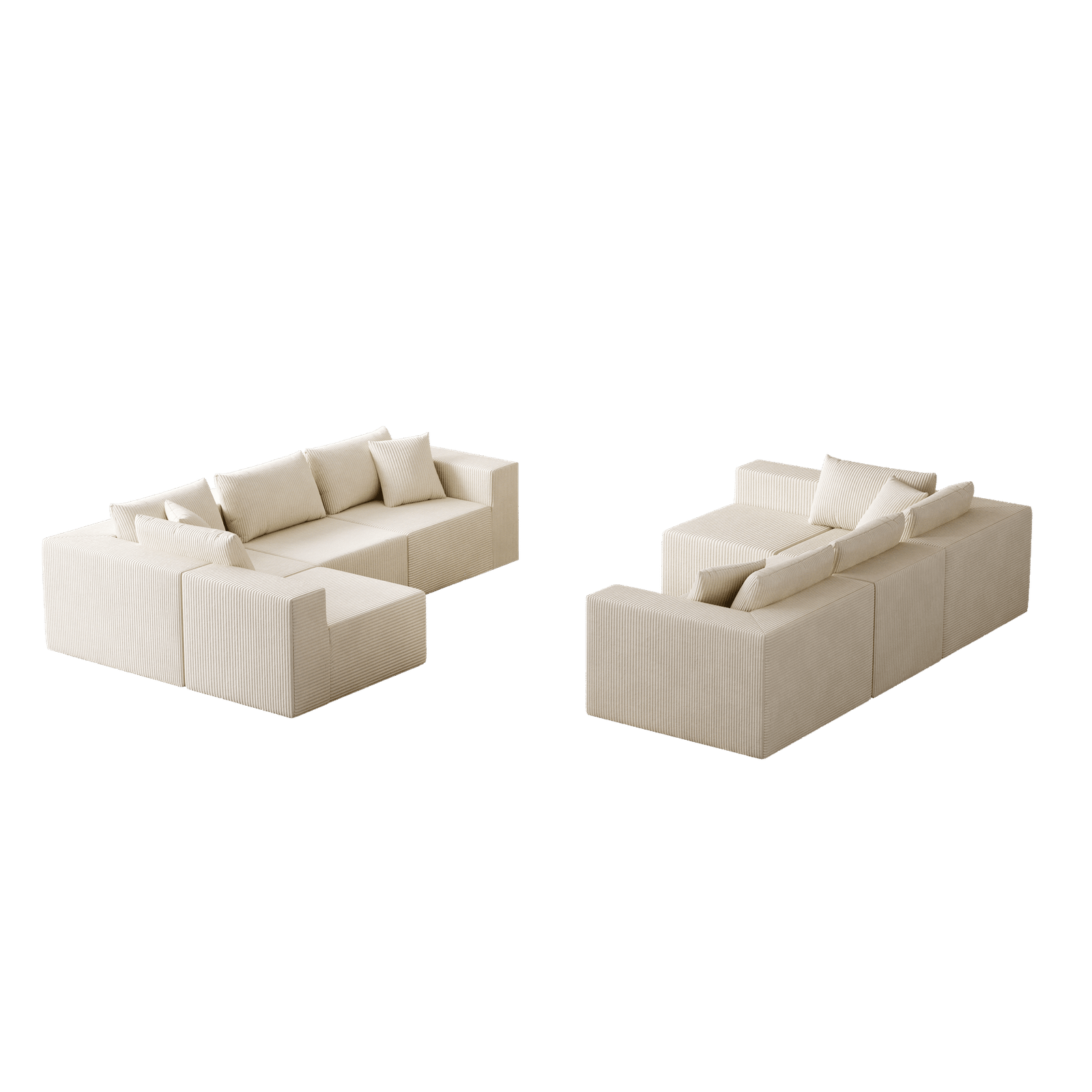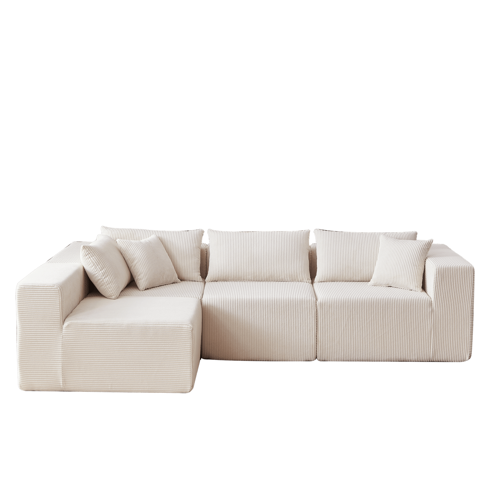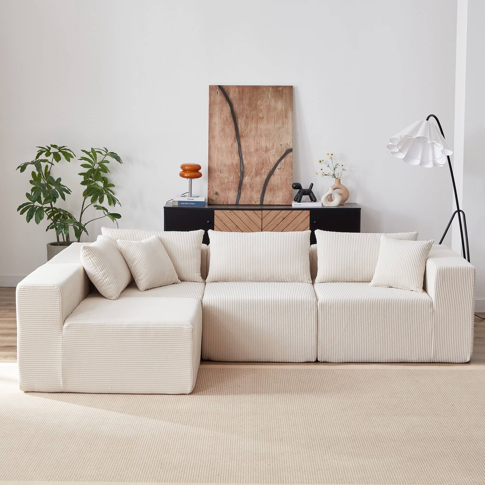 Corduroy L-Shaped Modular Sofa Set with Minimalist Design – Beige