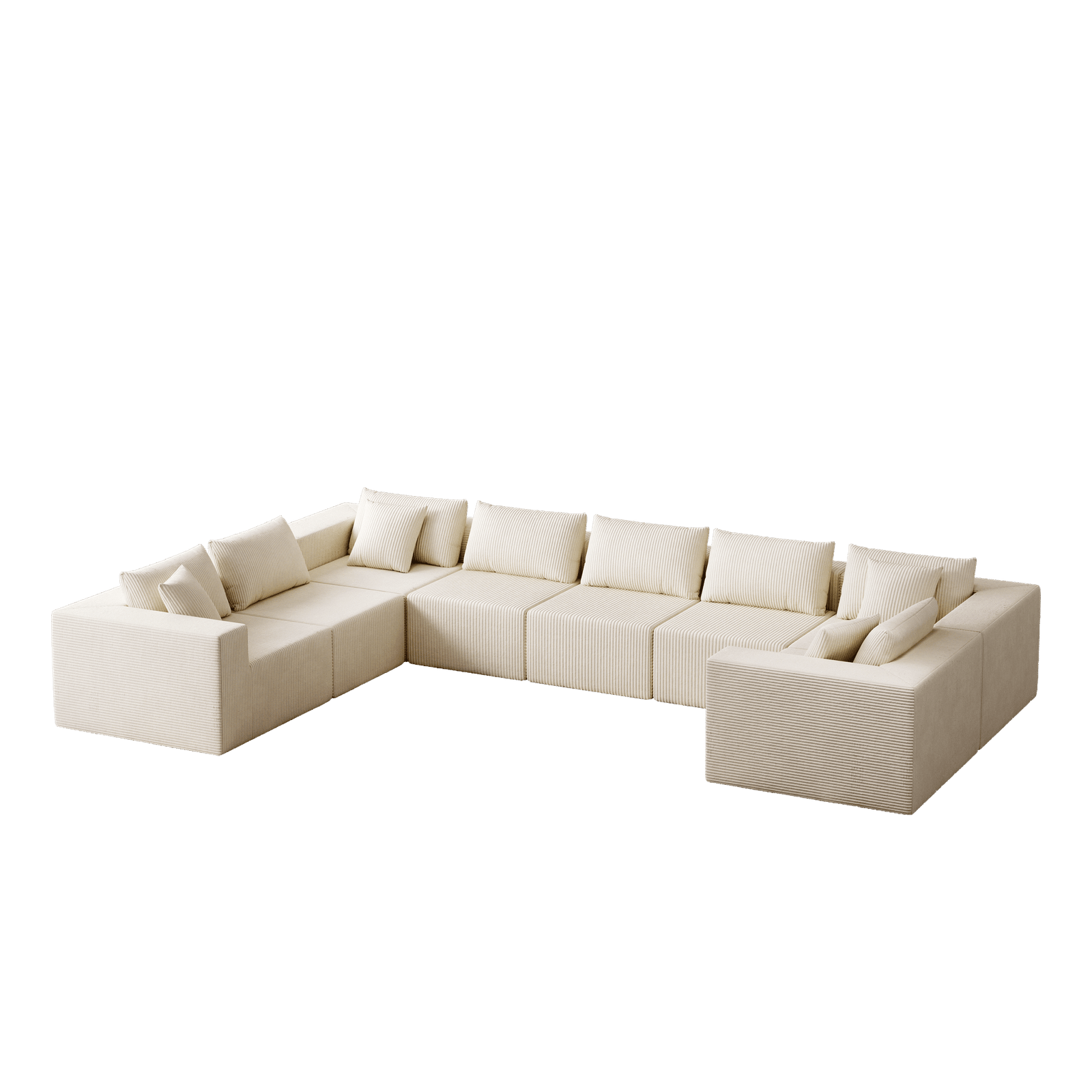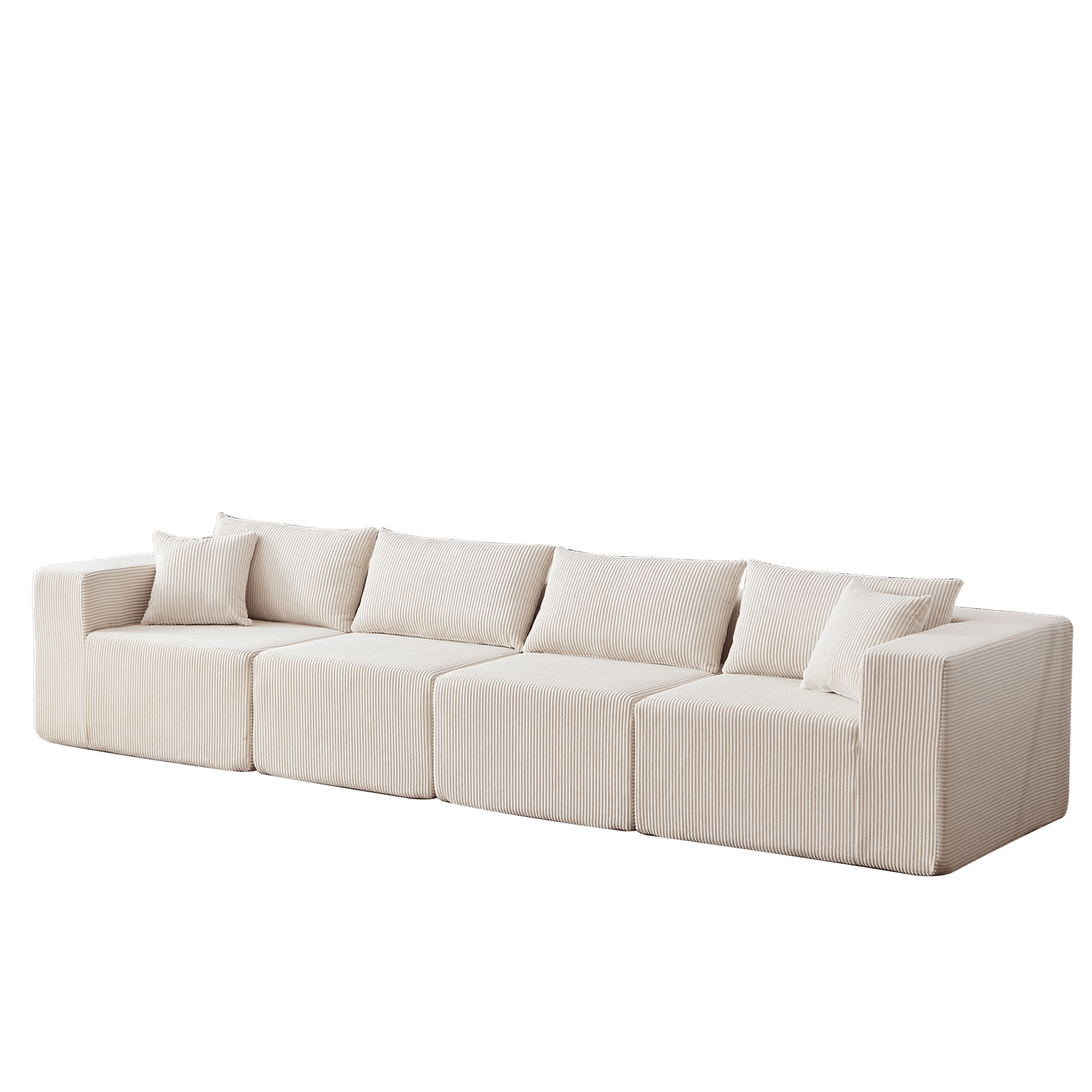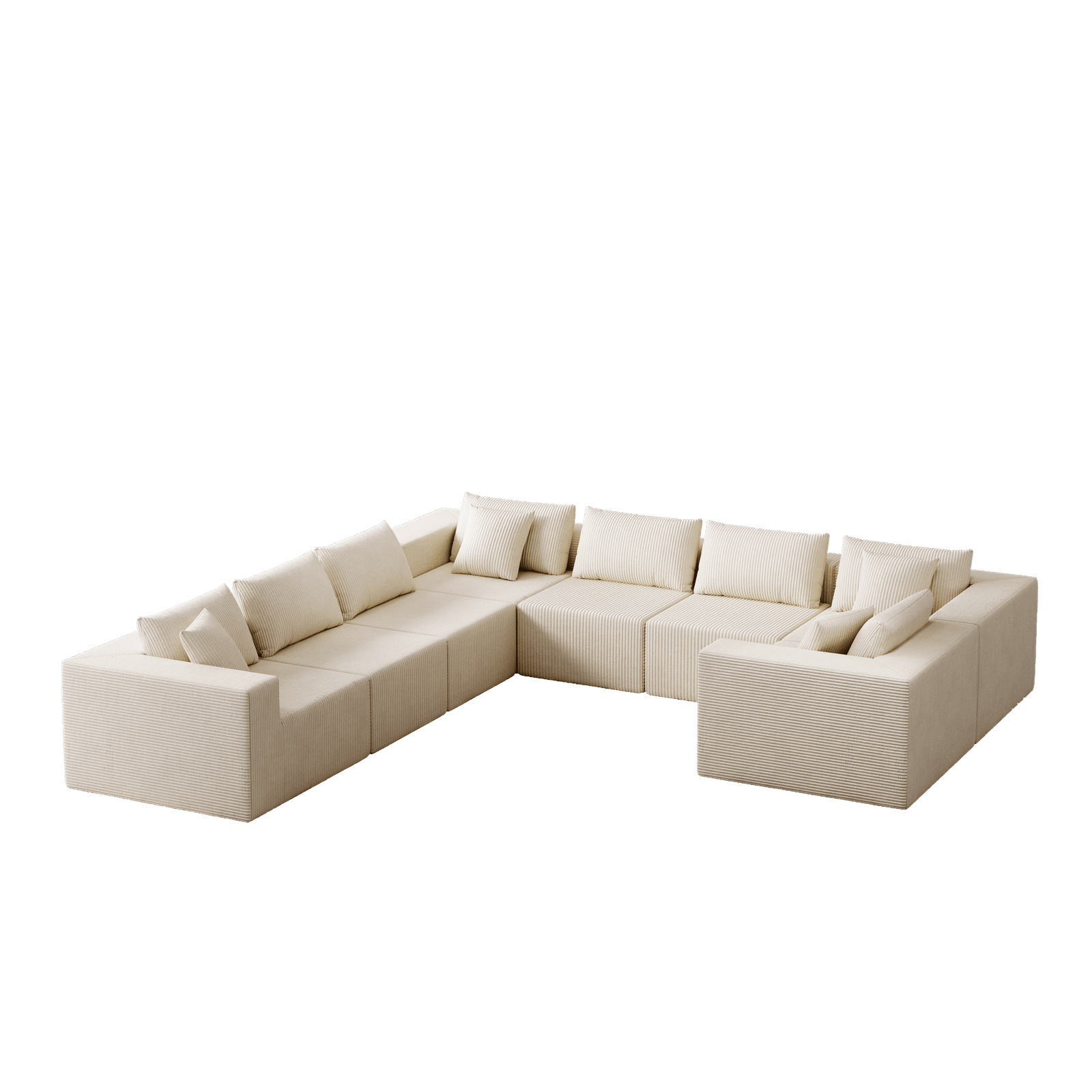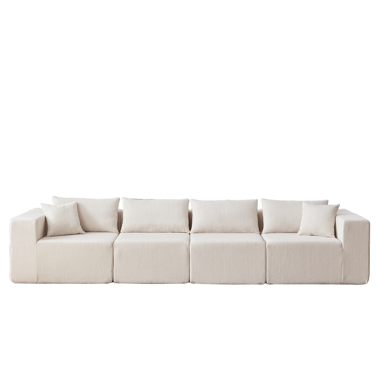 Corduroy L-Shaped Modular Sofa Set with Minimalist Design – Beige