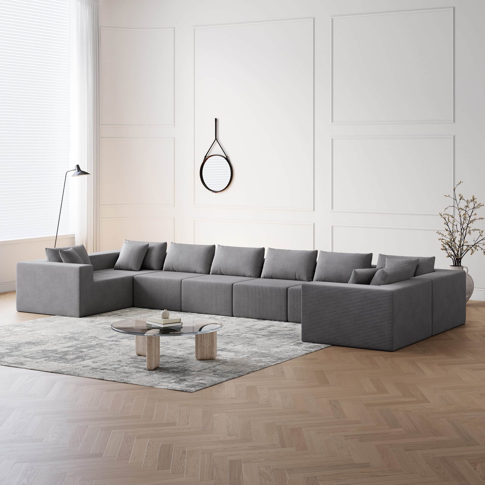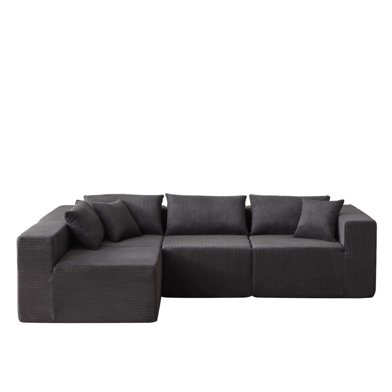 Transform your living space with our stunning Corduroy Sectional Sofa, designed to seamlessly blend style and comfort. This minimalist modular sectional conjures a chic atmosphere that makes your home stand out while providing a cozy haven for relaxation. Enjoy the perfect blend of modern elegance and functionality with this timeless piece of furniture.