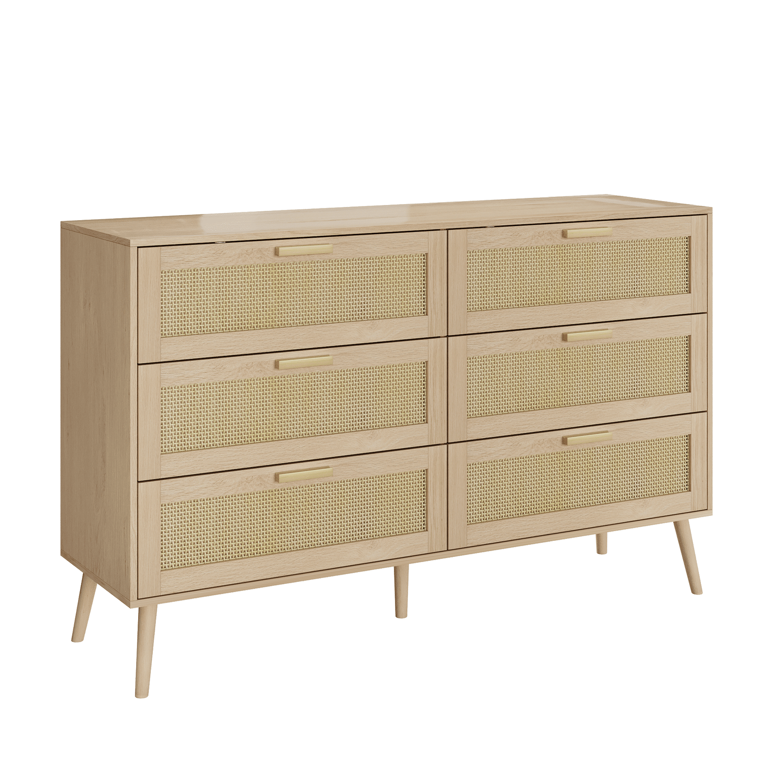 Stylish rattan bedroom dresser with 6 spacious drawers, perfect for organized and elegant storage in any room.