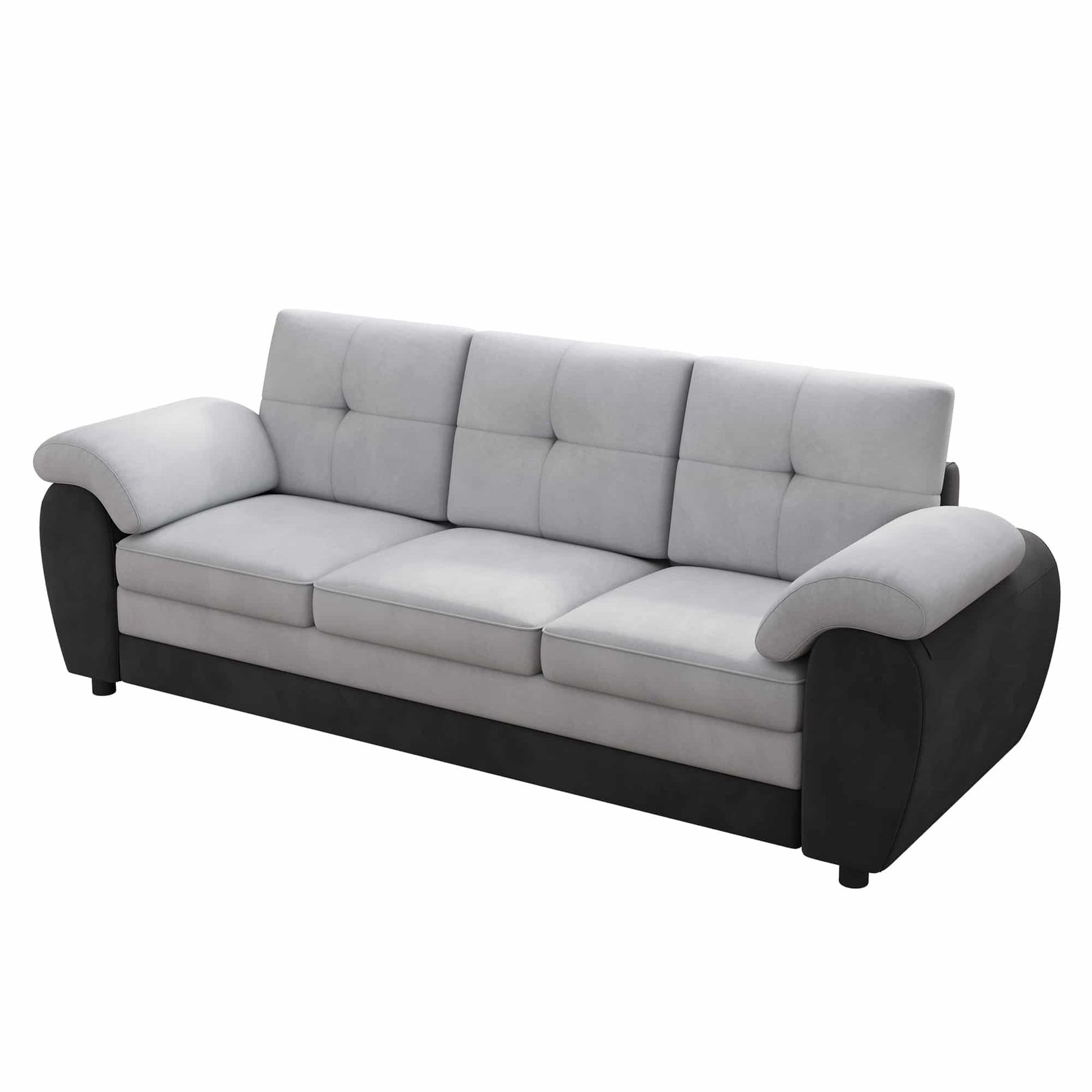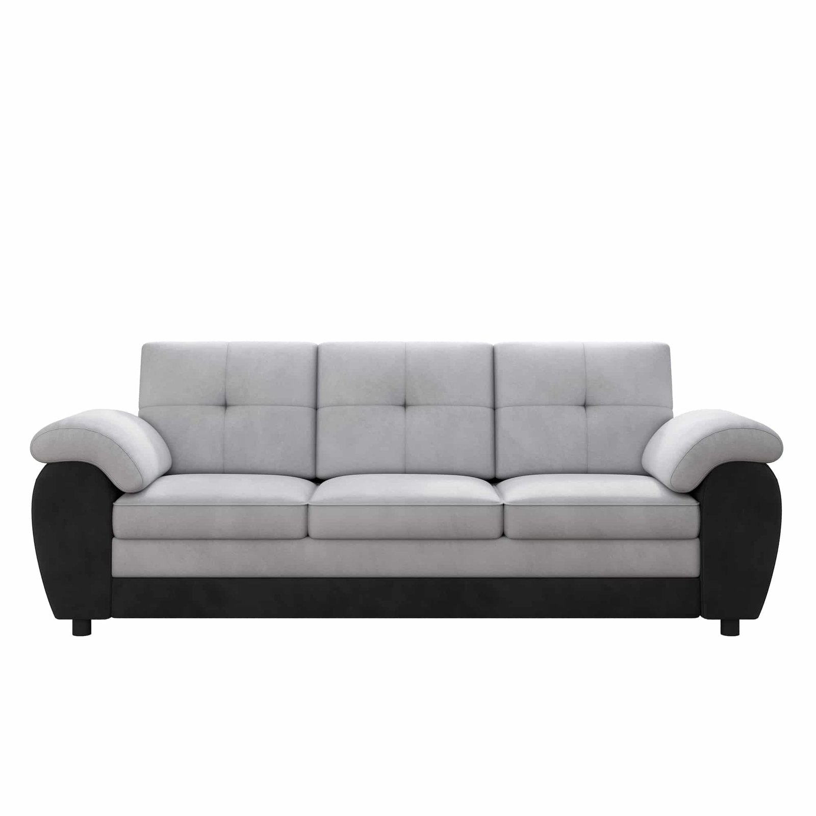 Upholstered 3-Seater Sofa with Deep Seating – Black Leather and Light Gray Velvet