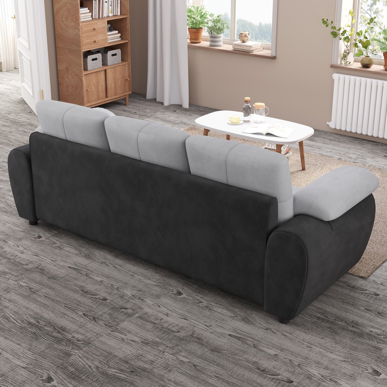 The Large Size Three Seat Sofa is more than just a piece of furniture; it’s the centerpiece of your living space. This modern upholstered couch, with its striking black leather combined with light gray velvet accents, effortlessly merges style with comfort. Whether you’re entertaining guests, enjoying a movie night, or simply seeking a cozy spot to read, this sofa transforms your living room into a warm, inviting oasis.