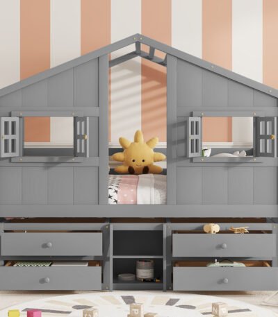 Ultimate Wooden House Loft Bed with Roof & Windows – Safe, Stylish & Fun for Kids’ Imagination