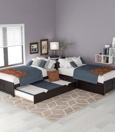 Espresso Corner Bunk Bed with built-in desk and storage offers space-saving comfort, durability, and style — perfect for modern homes and shared bedrooms.