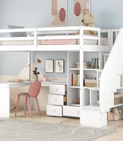 Maximize space with this stylish Loft Bed with Storage Stairs—durable, easy to assemble, and perfect for creating a functional, organized home environment.