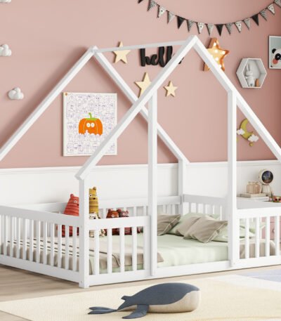 Ultimate Imaginative House Bed – Durable Full Wood Floor Bed with Playful Design & Safety Fence