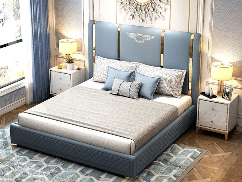 Genuine Leather Modern Upholstered Bed with Adjustable Height – Soft Style