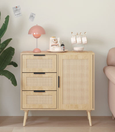 Rattan Wood Storage Cabinet with Drawer and Shelf Combo – Natural