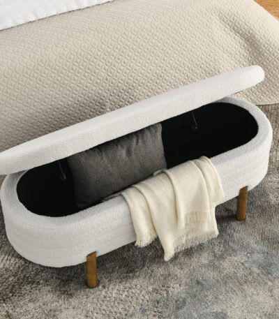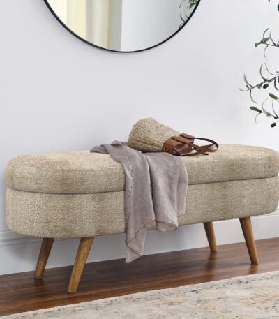 Foam Oval Storage Ottoman with Rubber Wood Legs – Beige
