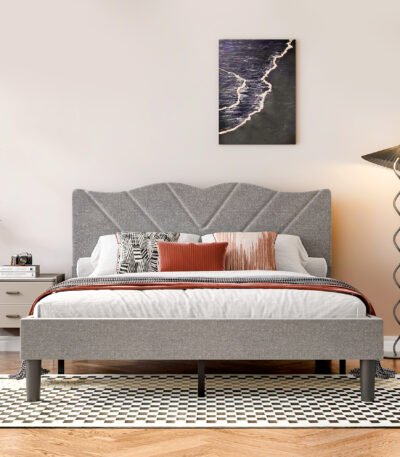 Upholstered Queen Platform Bed Frame with Heavy-Duty Support – Grey