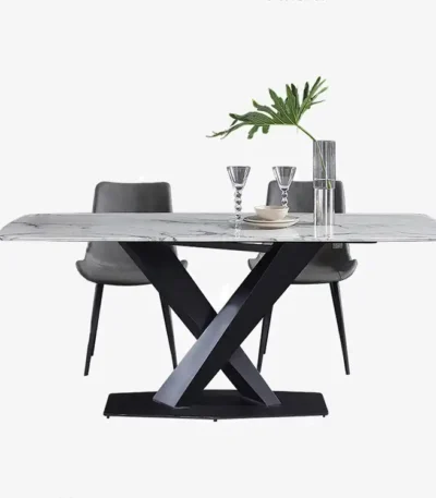 Sintered Stone Square Dining Table with Polished Finish – Elegant Grey