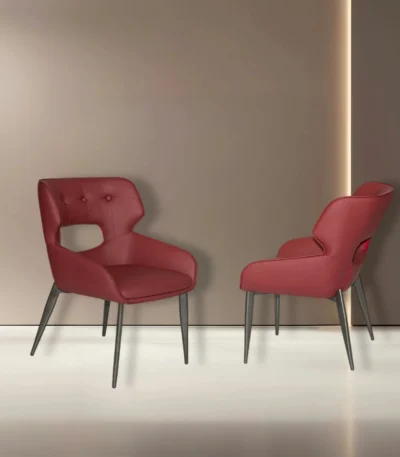 Red Microfiber Leather Dining Chair with Comfortable Cushions – Minimalist Design