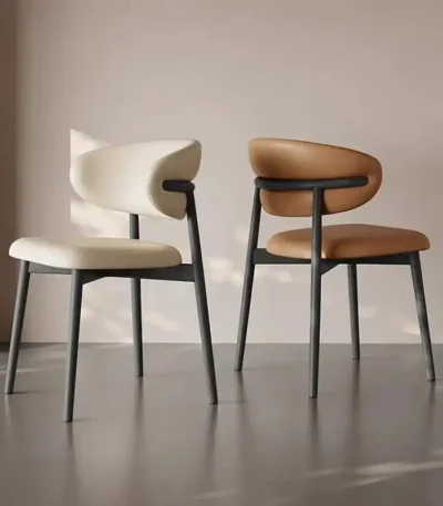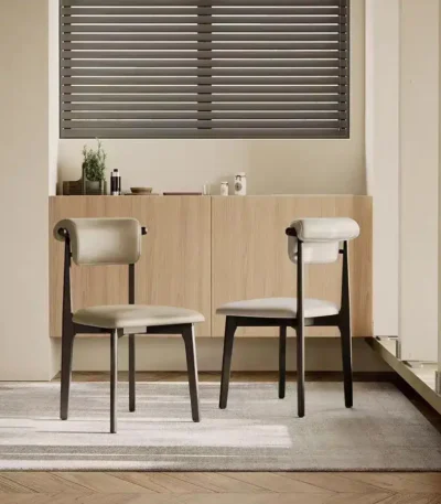 Wooden Dining Chair with Leather Upholstery – Nordic Italian Design
