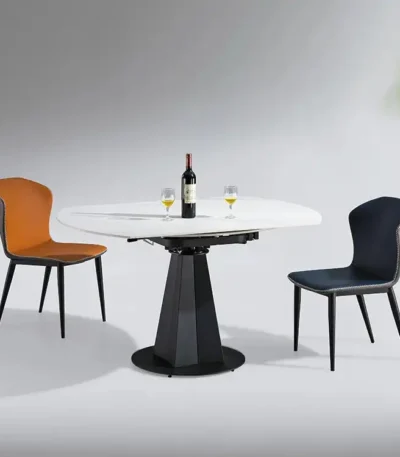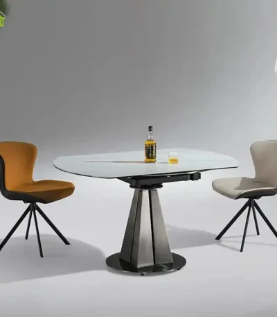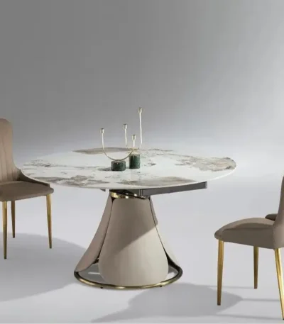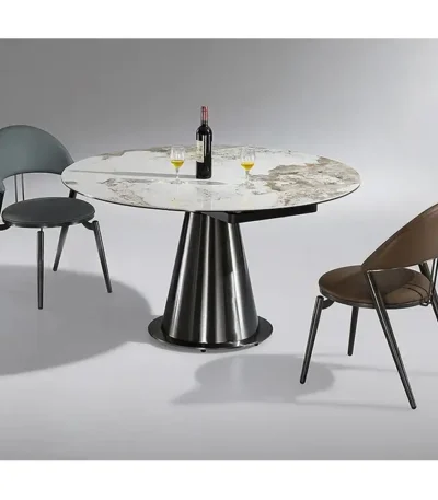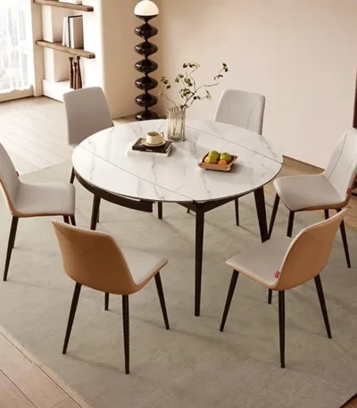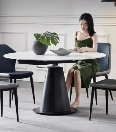 Ceramic Round Dining Table with Rotating Feature – Modern Rock Plate Design