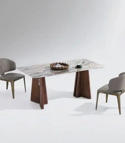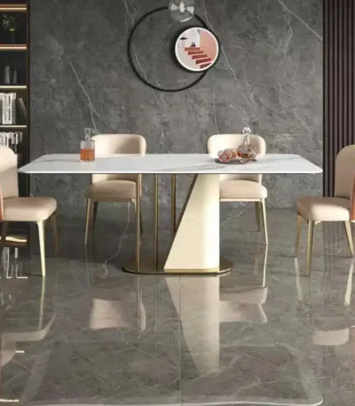 Slate Top Dining Table with Luxury Silver Base – Elegant Design