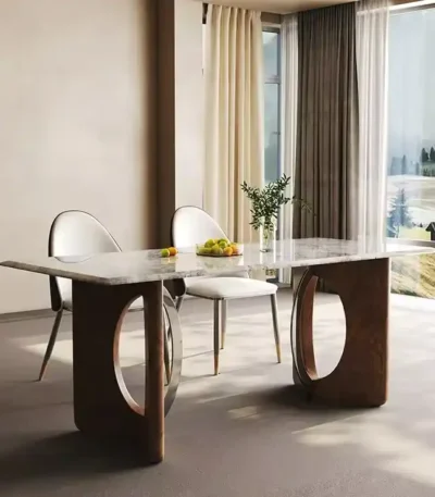 Natural Marble Stone Slate Rectangular Dining Table with Stainless Steel Legs – Elegant
