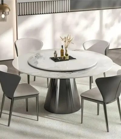 Premium Round Dining Table with Turntable – Modern Luxury Finish