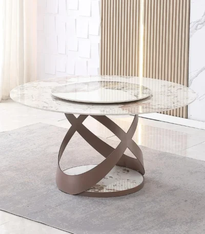 Luxury Round Dining Table with Rotating Mechanism – Elegant Finish