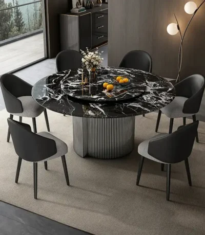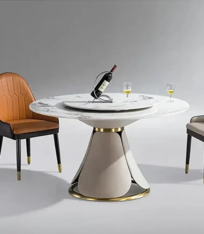 Marble Round Dining Table with Rotating Feature – Elegant White