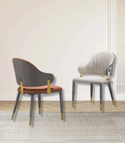 Upholstered Vintage Dining Chairs with Stainless Steel Frame – Neutral