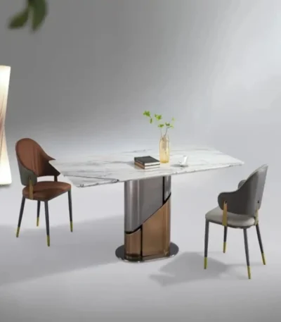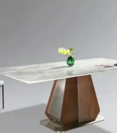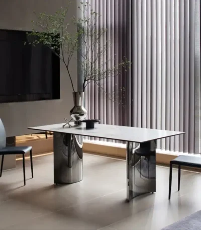 Stainless Steel Rectangular Table with Rock Marble Top – Elegant Design