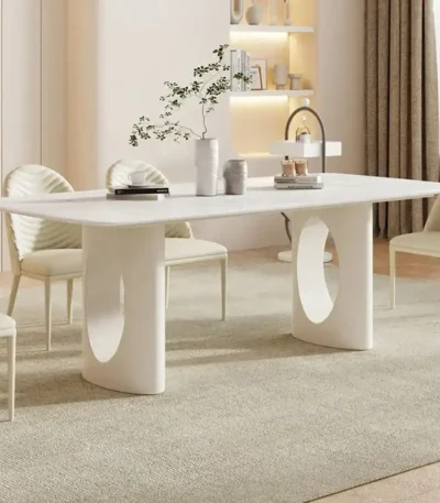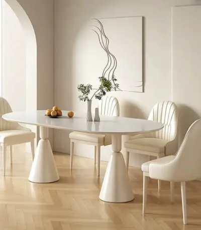 Natural Marble Dining Table with Minimalist Design – Cream