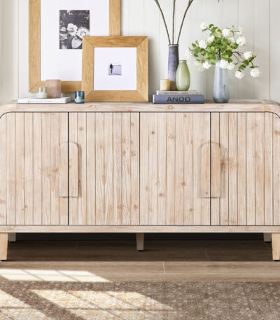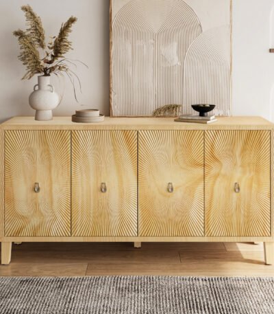 Natural Wood Buffet Cabinet with Carved Scatter Pattern – Multifunctional Accent Storage