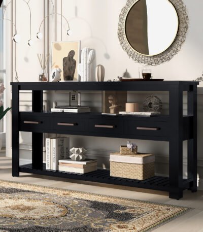 MDF and Pine Console Table with 4 Drawers and 2 Shelves – Classic White