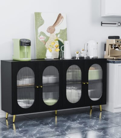 Black MDF Sideboard Cabinet with Adjustable Shelves and Acrylic Doors – Modern Accent for Kitchen, Dining, Living Room