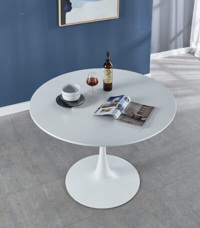 MDF Round Dining Table with Pedestal Base – Seats 4-6 – White