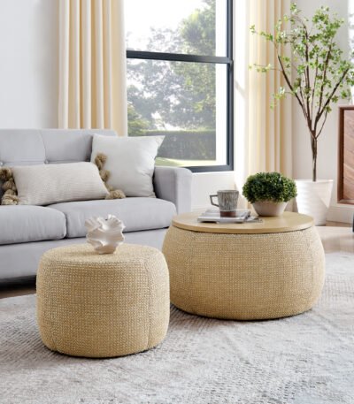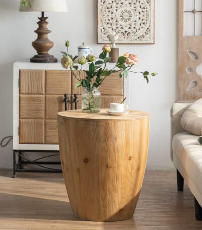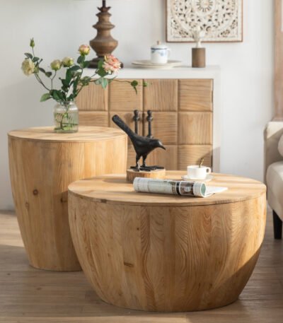 Fir Wood Bucket Shaped Coffee Table Set with Storage – Natural