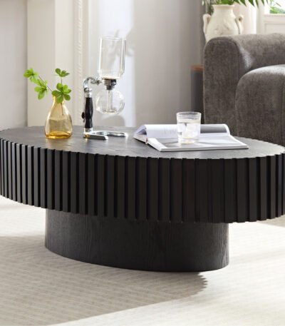 Handcrafted Oval Coffee Table with Sturdy Pedestal – Black