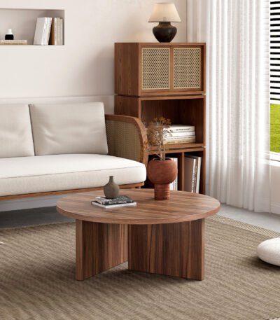 Walnut-Finished Round Coffee Table with Elegant Design – Modern Minimalism