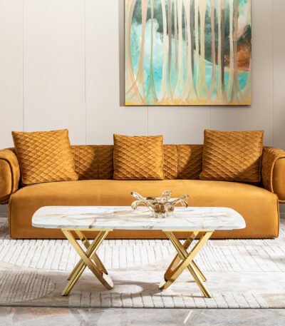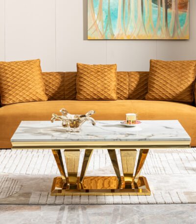 Upgrade your living room with the Gold Marble Coffee Table—luxurious, durable, and perfect for modern homes. Shop now for a stylish centerpiece!