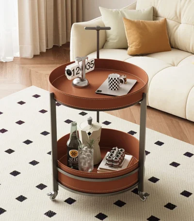 Leather Coffee Table with Wheels – Light Luxury