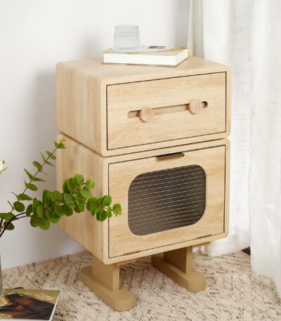 Natural Finish Rotatable Robot-Inspired Side Table with Playful Design