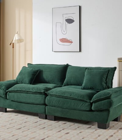 Green Corduroy Loveseat Sofa with Double Layer Cushion and Extra Pillows – 2-Seater