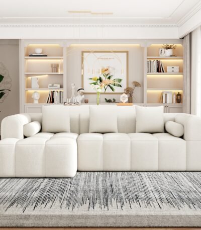 Chenille Fabric Modular Sectional Sofa with Deep Seating and Two Side Pockets – Beige