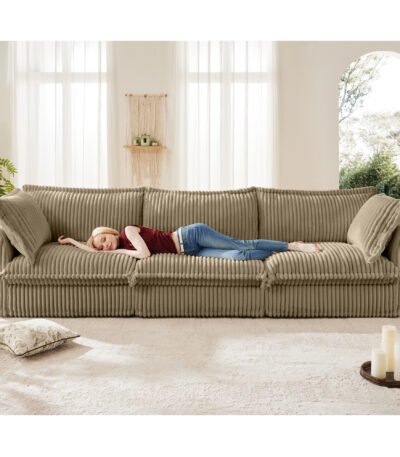 Corduroy 3-Seater Sofa with Deep Seating and Plush Pillows – Camel