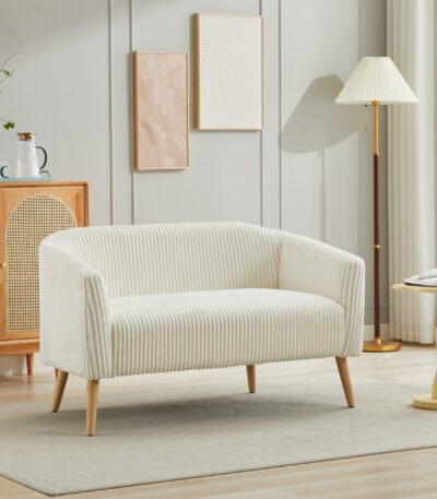 Corduroy Loveseat Sofa with Wooden Legs – Ivory
