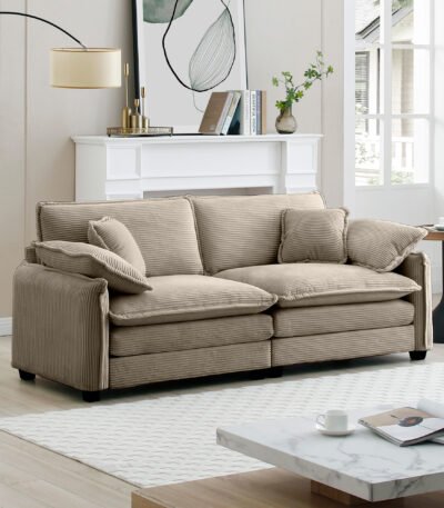 Tan Corduroy 2-Seater Sofa with 4 Pillows – Deep Seating