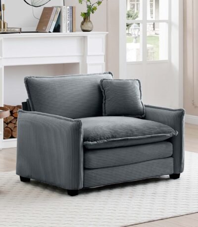 Grey Corduroy Single Chair Sofa with Deep Seat – Stylish Retro Design
