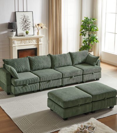 Corduroy U-Shaped Modular Sofa with Storage Ottoman – 6-Seater – Versatile Design