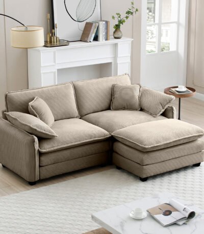 Corduroy L-Shaped Sofa with Ottoman – Tan